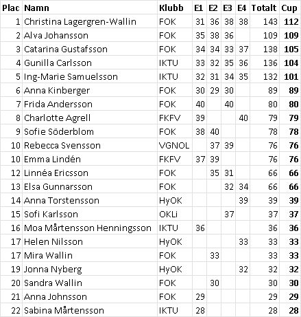 Sorterat på cuppoäng där de 3 bästa resultaten räknas.